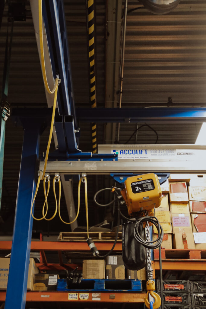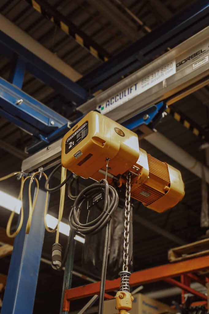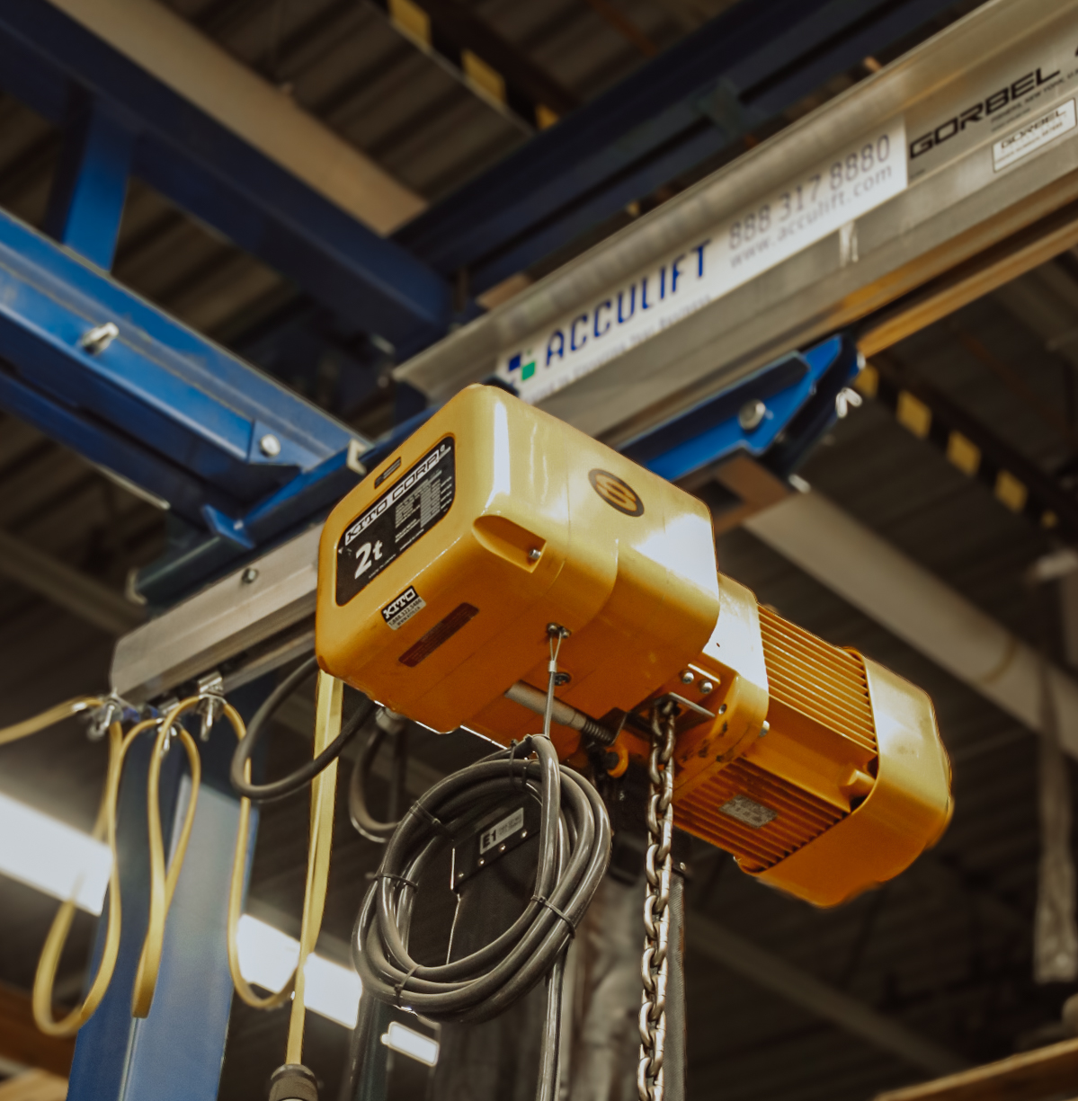 Working closely with maintenance manager JP and their engineering partners at Crozier Kilgore, Acculift designed and installed a 2-ton capacity Workstation Crane tailored to fit the facility’s structural parameters. The crane spans a work bay, enabling simultaneous operations and significantly improving workflow efficiency.